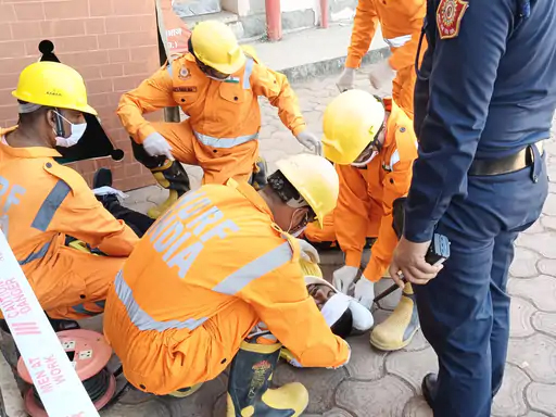 • अग्निशमन: अभ्यास के दौरान आग लगने की स्थिति से निपटने का प्रदर्शन किया गया, जिस पर फायर ब्रिगेड ने त्वरित कार्रवाई कर काबू पाया।