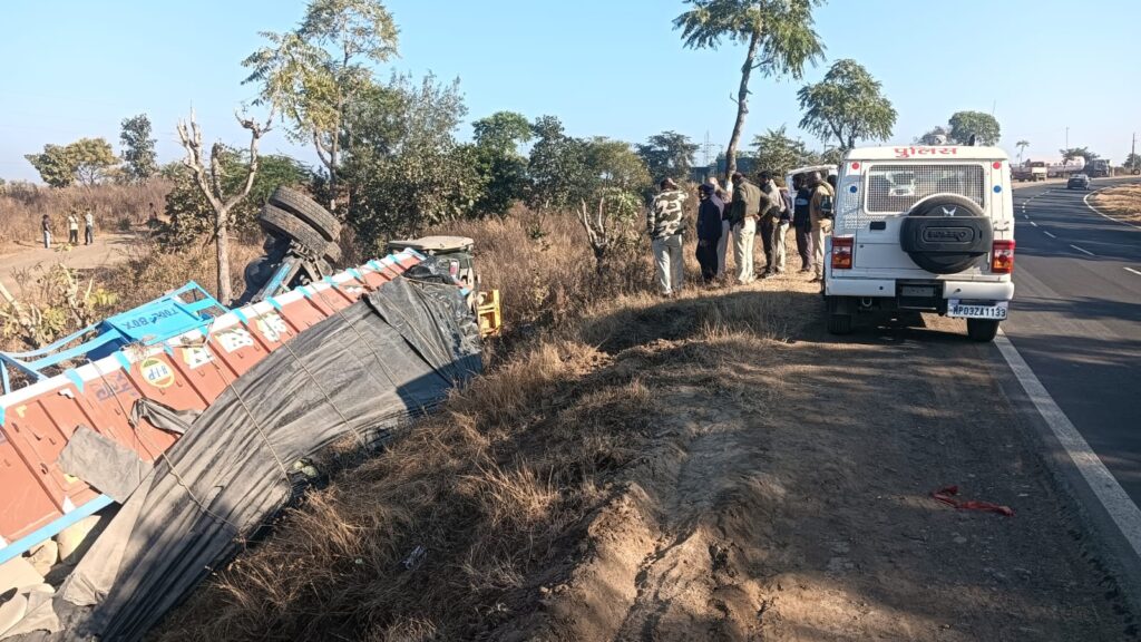 इंदौर–भोपाल हाईवे पर दर्दनाक हादसा, सीमेंट से भरा ट्राला पलटा, चालक की मौत