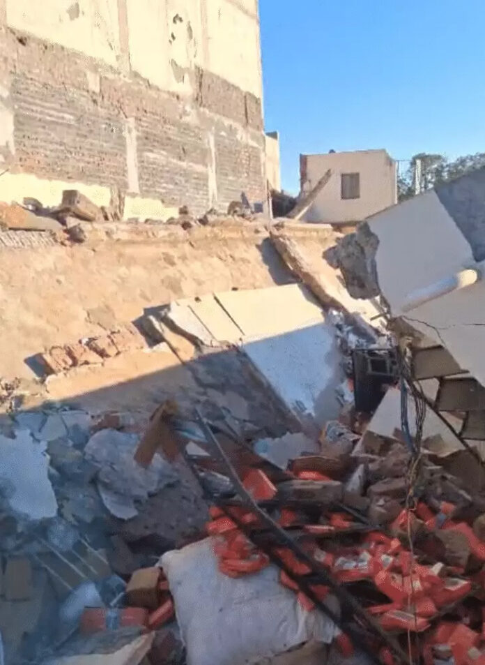 कुछ ही देर बाद पूरी इमारत गिर गई। यदि मजदूर समय रहते बाहर नहीं निकलते तो बड़ा हादसा हो सकता था।