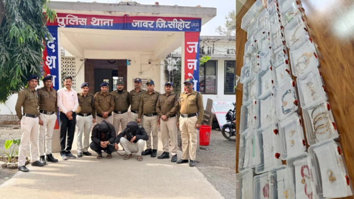 Drnewsindia.com सीहोर/जावर। जिले के थाना जावर क्षेत्र अंतर्गत ग्राम कजलास में हुई करोड़ों की बड़ी चोरी की वारदात का जावर पुलिस ने सफलतापूर्वक पर्दाफाश कर दिया है। पुलिस ने करीब 48 लाख रुपये मूल्य के सोने-चांदी के आभूषण और नगद राशि चोरी करने वाले दो आरोपियों को गिरफ्तार कर लिया है। आरोपियों के कब्जे से चोरी का अधिकांश माल भी बरामद कर लिया गया है।