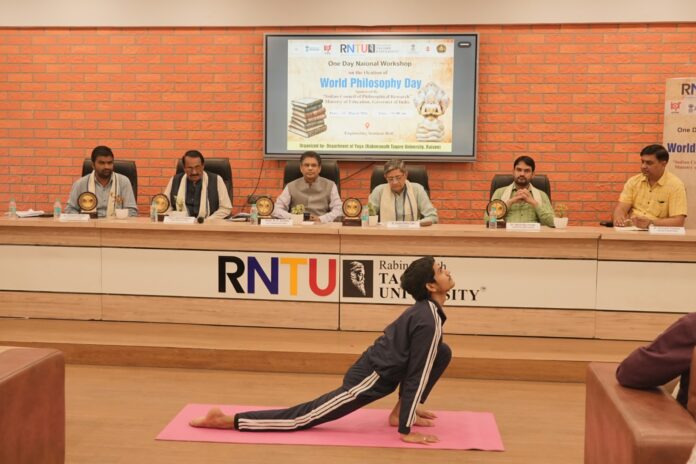 रबीन्द्रनाथ टैगोर विश्वविद्यालय के योग विभाग द्वारा ‘वर्ल्ड फिलॉसफी डे’ के उपलक्ष्य में एक दिवसीय कार्यशाला का भव्य आयोजन किया गया। इस वर्ष कार्यक्रम की मुख्य थीम “पर्यावरणीय संकट को रोकने में दर्शन शास्त्र की भूमिका” रखी गई, जिसमें विशेषज्ञों ने प्रकृति और मानव के बीच बढ़ते असंतुलन पर गहन दार्शनिक विचार साझा किए।