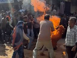 Drnewsindia.com/देवास। जिले के सतवास में अतिक्रमण हटाने की कार्रवाई के दौरान दंपती द्वारा आत्मदाह की कोशिश का मामला तूल पकड़ता जा रहा है। प्रशासनिक लापरवाही और घटना से नाराज परिजनों व स्थानीय लोगों ने थाने के पास चौराहे पर पिछले 4 घंटे से चक्काजाम कर रखा है, जिससे दोनों ओर करीब 3 किलोमीटर तक वाहनों की लंबी कतार लग गई है।