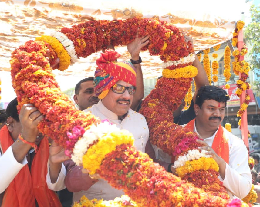 आष्टा में मुख्यमंत्री डॉ. मोहन यादव का भव्य स्वागत। लाड़ली बहनों के सम्मेलन के दौरान करीब 2 किलोमीटर लंबे रोड शो में मुख्यमंत्री का फूलों की विशाल माला पहनाकर और पगड़ी बांधकर ऐतिहासिक अभिनंदन किया गया