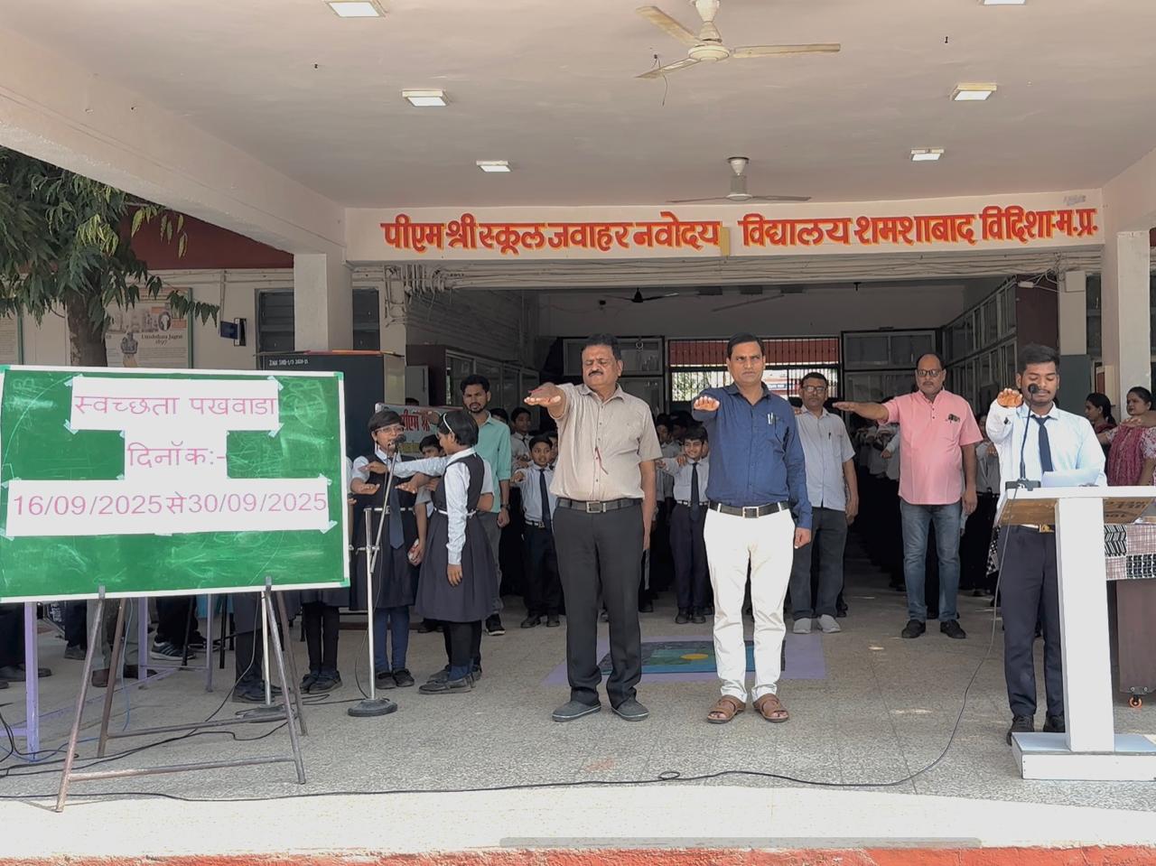 पीएम श्री स्कूल जवाहर नवोदय विद्यालय, शमशाबाद में मंगलवार से स्वच्छता पखवाड़ा धूमधाम से प्रारंभ हुआ। कार्यक्रम का शुभारंभ कक्षा 12वीं के छात्र कल्याण ने सभी विद्यार्थियों और कर्मचारियों को स्वच्छता की शपथ दिलाकर किया।