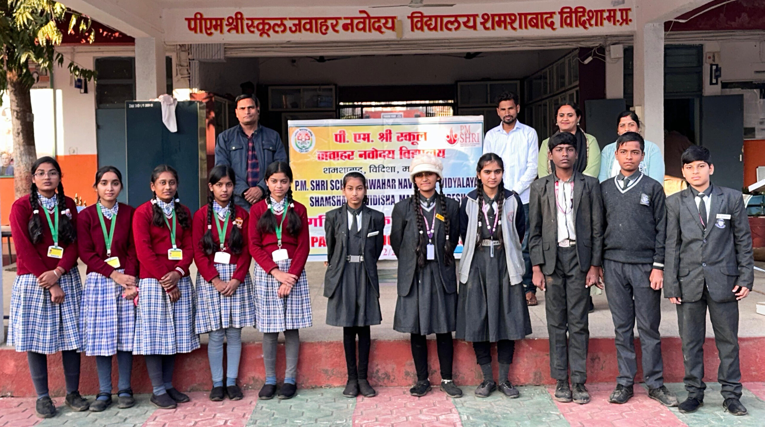 विदिशा। पीएम श्री स्कूल जवाहर नवोदय विद्यालय, शमशाबाद, जिला विदिशा (मध्यप्रदेश) में गति निर्धारक गतिविधियों के अंतर्गत विद्यार्थियों की रचनात्मक प्रतिभा को मंच प्रदान करने के उद्देश्य से भित्ति चित्रण प्रतियोगिता का आयोजन किया गया। इस प्रतियोगिता में विद्यालय की कक्षा 6वीं से 12वीं तक के छात्र-छात्राओं ने उत्साहपूर्वक सहभागिता की और अपनी कला के माध्यम से विभिन्न सामाजिक, सांस्कृतिक एवं समसामयिक विषयों को प्रभावी ढंग से प्रस्तुत किया।