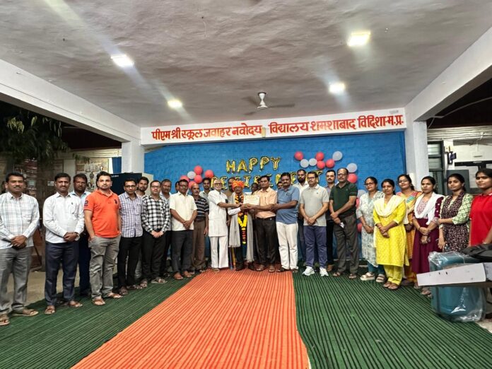 Drnewsindia.comविदिशा। पीएम श्री स्कूल जवाहर नवोदय विद्यालय, शमशाबाद (म.प्र.) में प्रधान रसोइया उस्मान खान के सेवानिवृत्त होने पर विद्यालय परिवार की ओर से भव्य विदाई समारोह का आयोजन किया गया।