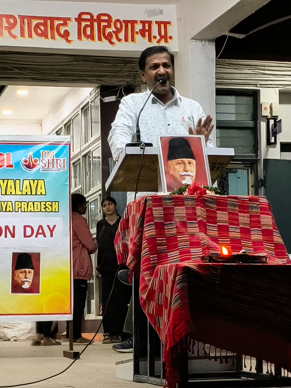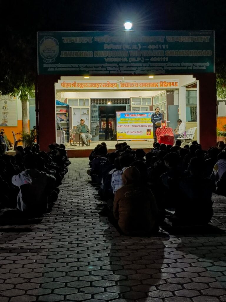 विदिशा। पीएम श्री स्कूल जवाहर नवोदय विद्यालय, शमशाबाद, जिला विदिशा (म.प्र.) में भारत के प्रथम शिक्षा मंत्री एवं महान स्वतंत्रता सेनानी और प्रख्यात शिक्षाविद, भारत रत्न मौलाना अबुल कलाम आजाद जी का जन्म दिवस राष्ट्रीय शिक्षा दिवस के रूप में बड़े ही धूमधाम और उत्साह के साथ मनाया गया। सर्वप्रथम विद्यालय के उप प्राचार्य वी के तिवारी एवं अन्य स्टाफ कर्मचारियों ने मौलाना जी के चित्र पर माल्यार्पण कर दीप प्रज्वलित किया। उप प्राचार्य ने अपने भाषण में कहा कि मौलाना अबुल कलाम आजाद जी का शिक्षा के क्षेत्र में अभूतपूर्व योगदान रहा है। इस अवसर पर विद्यालय के वरिष्ठ शिक्षक पी सी गौतम, डॉ के पी एस चौहान, सुरेश इरागर और जे पी गुप्ता ने सभा को संबोधित किया। विद्यालय के विद्यार्थियों ने भाषण, कविता, और प्रश्नोत्तरी के माध्यम से कार्यक्रम ने चार चाँद लगा दिए। इस अवसर पर सभी विद्यार्थी और कर्मचारी उपस्थित रहे।