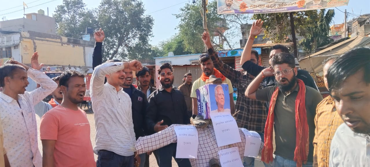 बांग्लादेश में हिंदुओं पर अत्याचार के विरोध में शमशाबाद में पुतला दहन