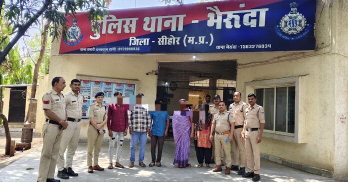 भैरूंदा (सीहोर): सीहोर पुलिस ने ग्राम भादाकुई में हुए एक सनसनीखेज हत्याकांड का पर्दाफाश कर दिया है। पिछले कई दिनों से चर्चा में रहे इस ‘अंधे कत्ल’ की गुत्थी सुलझाते हुए पुलिस ने 5 आरोपियों को गिरफ्तार किया है। मामला प्रेम प्रसंग से जुड़ा बताया जा रहा है, जिसमें हत्या के बाद शव को साक्ष्य मिटाने की नीयत से मंडीदीप (रायसेन) में ठिकाने लगाया गया था।