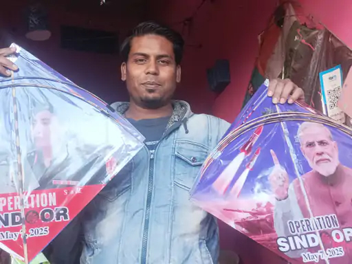 पतंग विक्रेता अकरम ने बताया कि ‘ऑपरेशन सिंदूर’ थीम वाली पतंगें ग्राहकों को काफी पसंद आ रही हैं।