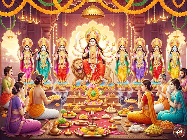 • भक्त माता की भक्तवत्सला और कृपामयी स्वरूप की वंदना में जुटे हैं।