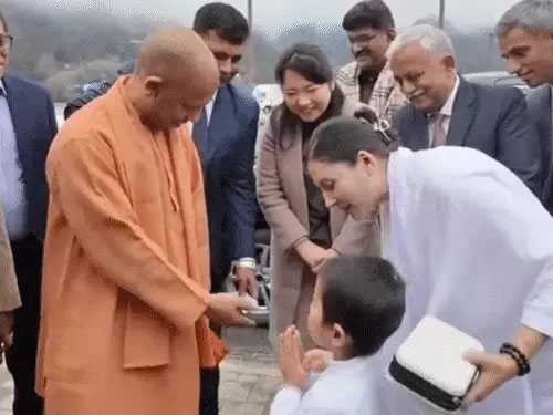 • नन्हे भक्त: भारतीय बच्चों ने योगी के पैर छूकर आशीर्वाद लिया।