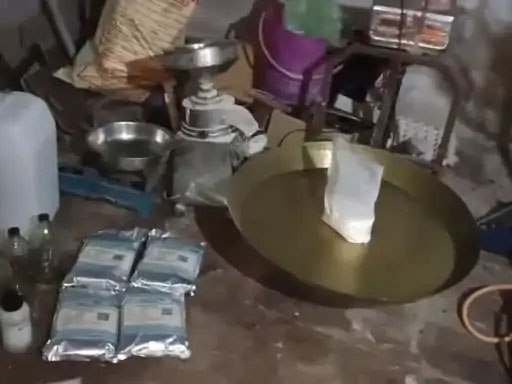 3. सामग्री जब्त: पुलिस ने चक्की, चूल्हे और केमिकल सहित सारा सामान जब्त किया है।