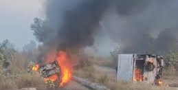 • गुस्साए किसानों ने 14 वाहनों को आग के हवाले कर दिया