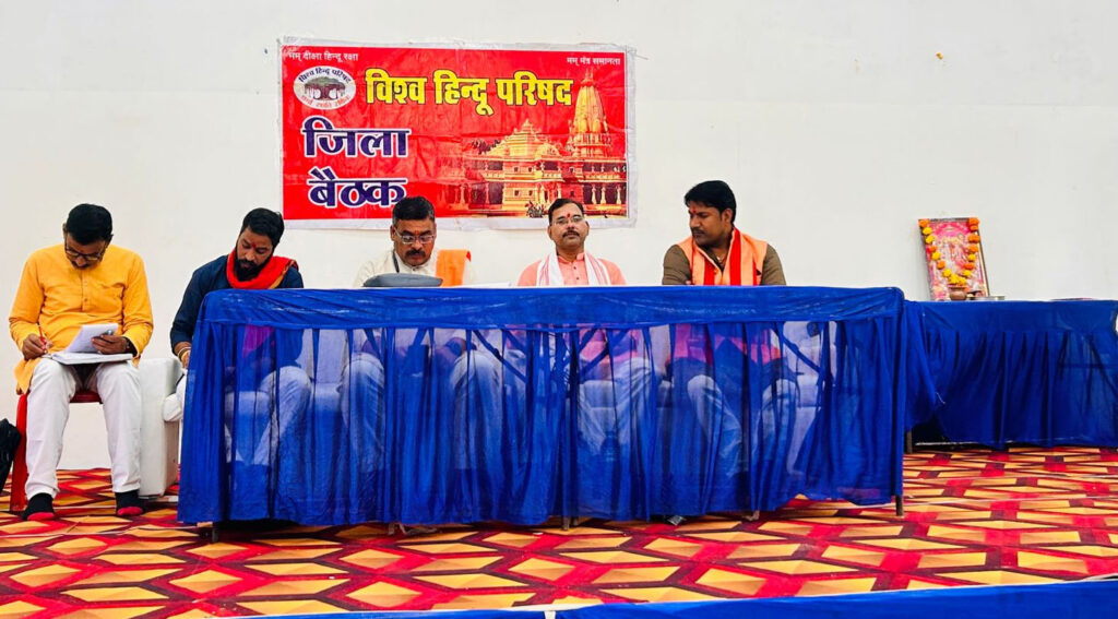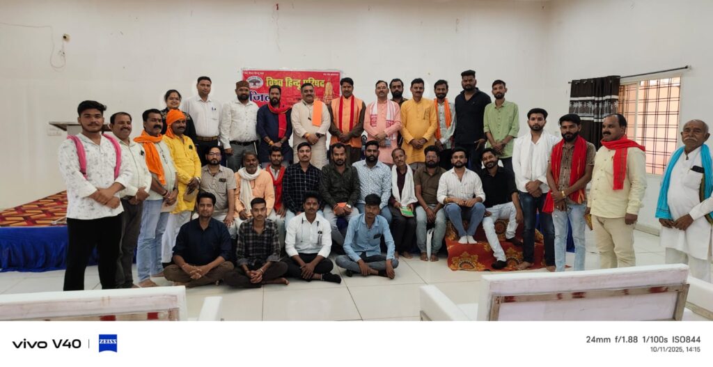 विदिशा। विश्व हिंदू परिषद, जिला विदिशा की बैठक रविवार को शहर के कपूर पैराडाइज में संपन्न हुई। इस बैठक में प्रांत मंत्री श्री सुरेंद्र जी भाईसाहब, प्रांत सह मंत्री श्री मलखान सिंह जी राजपूत भाईसाहब, तथा प्रांत संयोजक बजरंग दल श्री अवधेश जी तिवारी भाईसाहब सहित अनेक वरिष्ठ पदाधिकारियों ने भाग लिया और कार्यकर्ताओं को मार्गदर्शन प्रदान किया।