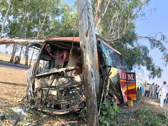 सीहोर: इंदौर-भोपाल रोड पर भीषण सड़क हादसा, अनियंत्रित होकर पेड़ से टकराई स्लीपर बस; एक की मौत