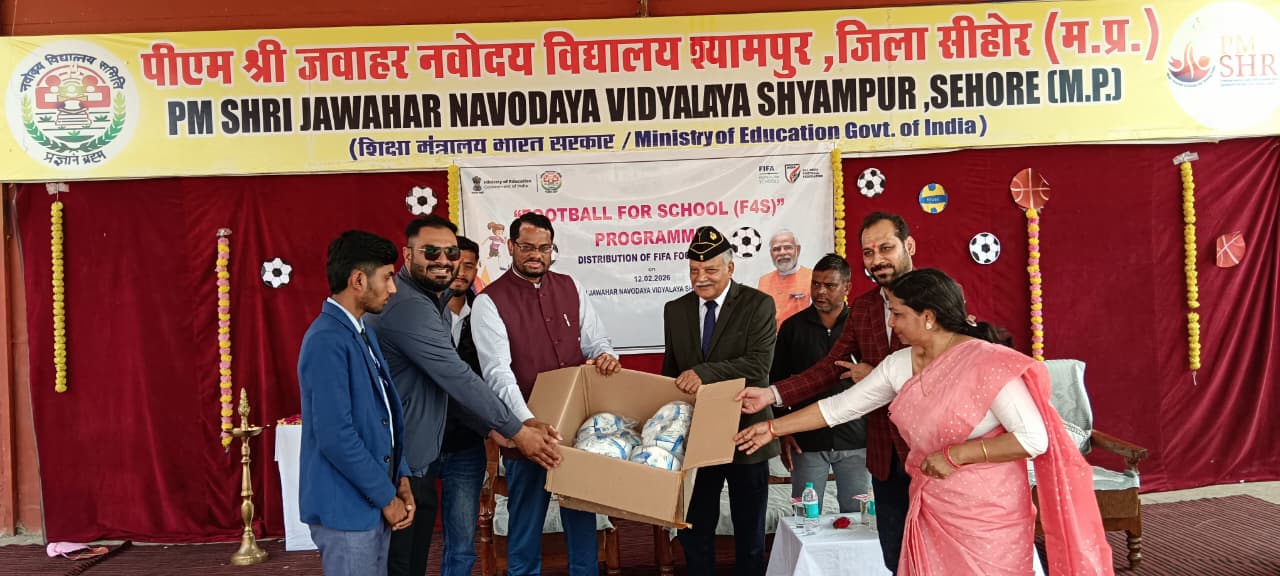 श्यामपुर / भोपाल रोड स्थित पीएम श्री जवाहर नवोदय विद्यालय, श्यामपुर में आज खेल और उत्साह का संगम देखने को मिला। अवसर था—विश्व फुटबॉल संगठन (FIFA) और भारत के शिक्षा मंत्रालय के संयुक्त तत्वाधान में आयोजित फीफा फुटबॉल वितरण कार्यक्रम का।