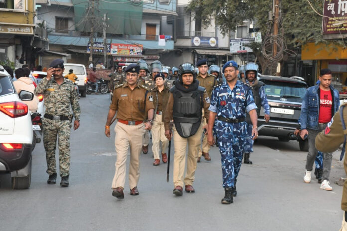 और स्थानीय पुलिस ने प्रमुख मार्गों पर किया पैदल मार्च