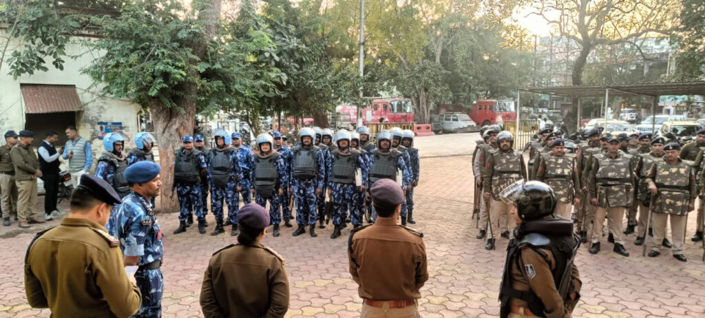 फ्लैग मार्च से पहले पुलिस अधीक्षक दीपक कुमार शुक्ला ने उपस्थित बल को ब्रीफ करते हुए सतर्कता, अनुशासन और जनता से समन्वय बनाए रखने के निर्देश दिए।