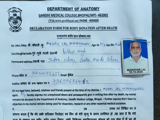 • संकल्प: उन्होंने वर्ष 2014 में ही देहदान का मन बना लिया था।