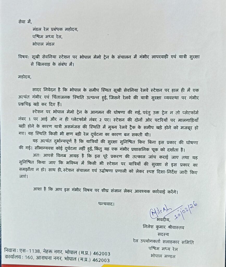 रेलवे सलाहकार समिति के सदस्य निलेश श्रीवास्तव बिफरे; बोले— “यात्रियों की जान से खिलवाड़ कतई बर्दाश्त नहीं”