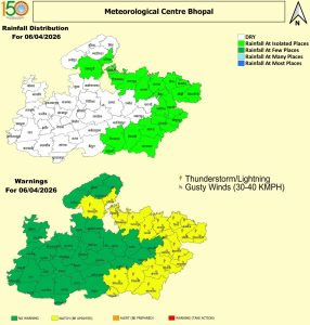 6 अप्रैल (सोमवार)बारिश की गतिविधियों में तेजीग्वालियर-भोपाल समेत प्रदेश के अधिकांश जिले
