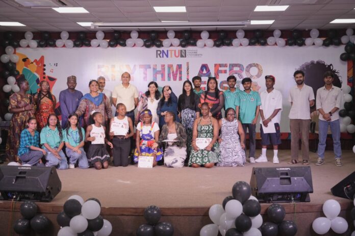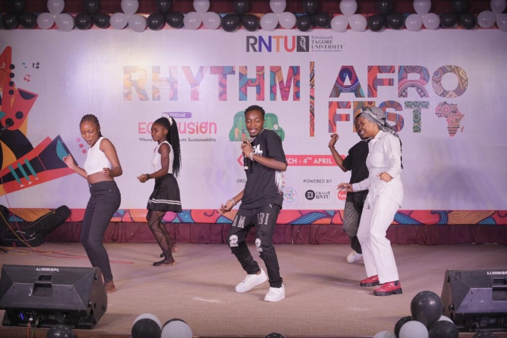 भोपाल | 03 अप्रैल, 2026 रबीन्द्रनाथ टैगोर विश्वविद्यालय (RNTU) के वार्षिक महोत्सव ‘रिदम 2026’ के अंतर्गत लगातार तीसरे वर्ष ‘अफ्रो फेस्ट’ का भव्य आयोजन किया गया। इस उत्सव ने भोपाल में लघु अफ्रीका का दृश्य जीवंत कर दिया, जहाँ कला, संगीत और परंपराओं के माध्यम से सांस्कृतिक विविधता का जश्न मनाया गया।